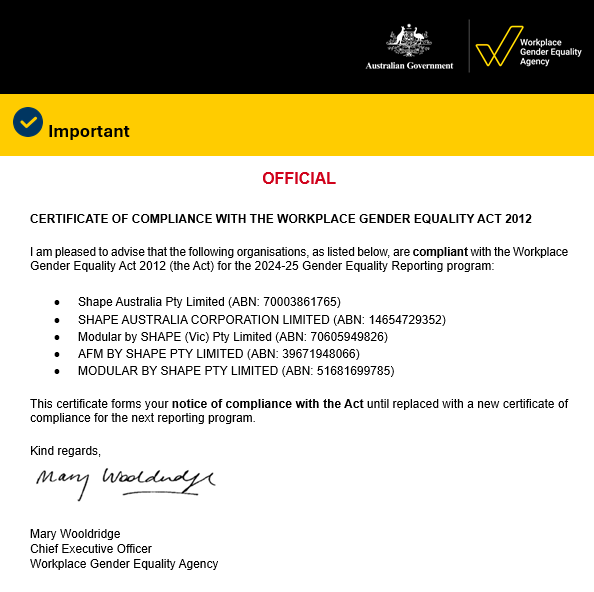 SHAPE is committed to attaining the highest level of corporate governance to ensure the future sustainability of the organisation and to create long term value for our shareholders.
